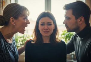 А затем он её толкнул. Не ударил, не замахнулся — просто сильно и уверенно толкнул в сторону. Её тело, потеряв равновесие, пролетело метр и глухо ударилось плечом и виском о стену, оклеенную грубыми виниловыми обоями. Толчок был рассчитан идеально — достаточно сильно, чтобы унизить и причинить боль, но недостаточно, чтобы оставить серьёзные следы. Это было его искусство.