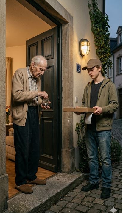 Я стоял там, с весом большой пиццы с пепперони и тонкого бумажного чека, которые вдруг казались абсурдными перед лицом такой глубокой распада. Он не выругался и не вздохнул. Он просто начал наклоняться — процесс выглядел мучительно медленным и жёстким, суставы протестовали на каждом сантиметре. Он пытался найти монеты рядом со старой плетёной качелей на крыльце, его пальцы скользили по пыли и теням.